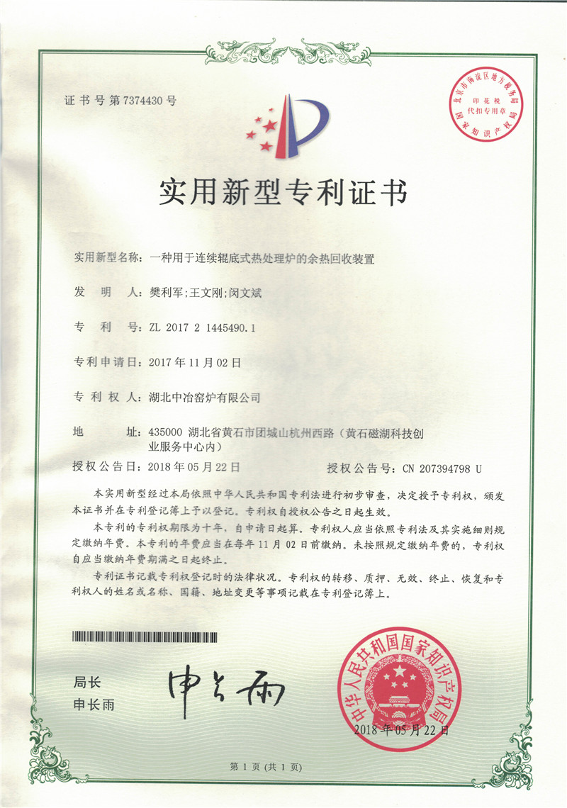 一種用于連續(xù)輥底式熱處理爐的余熱回收裝置