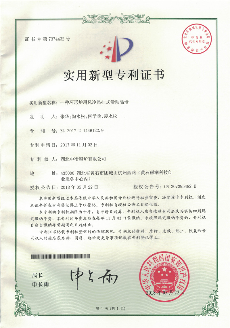 一種環(huán)形爐用風冷吊掛式活動隔墻
